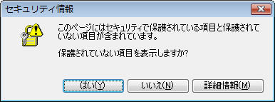・プロテクトコードの作成時に、有料オプションの「IEのメニュー→名前を付けて保存」対策(税込み5,000円)をご利用になる場合、Windows2000のIE対策をするためには、弊社指定のiframeタグ: <iframe width=0 height=0 style='display:none;'></iframe> を挿入していただくことになっています。URL(src属性)の指定はありません。 ただ、このままですと、SSL環境で問題になります。URLを指定していない場合、HTTP扱いになるためのか、HTTPSのURLコンテンツの中に、通信が難読化されていないコンテンツが混じっているということで、下記のような警告が表示されます。 ![]() ただし、解決方法はいたって簡単です。 dummy.htmlなど適当なファイル名で、中身は空でもいいですので、ファイルを作成します。 そして、 <iframe width=0 height=0 style='display:none;' src="dummy.html"></iframe> のようにしてsrc属性を指定してください。 これにより、ブラウザは、 https://(お客様サーバ名)/dir/dummy.html にアクセスすることになり、異なるセキュリティゾーンのコンテンツが混在するという現象は発生しえません。警告は表示されないことになります。 8.インストールするのにルート権限は必要ですか?
